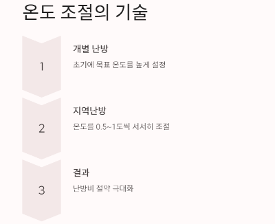 보일러를 사용하는 가정이라면 온도 설정에도 전략이 필요합니다. 개별 난방 시스템을 이용하신다면, 초기에 목표 온도에 빨리 도달하기 위해 설정 온도를 높게 잡아보세요. 반대로 지역난방 시스템을 사용 중이라면 온도를 0.5~1도씩 서서히 조절하면서 효율을 극대화할 수 있습니다. 이런 방법을 활용하면 난방비를 더욱 절약할 수 있답니다.
